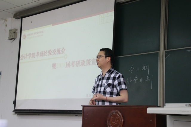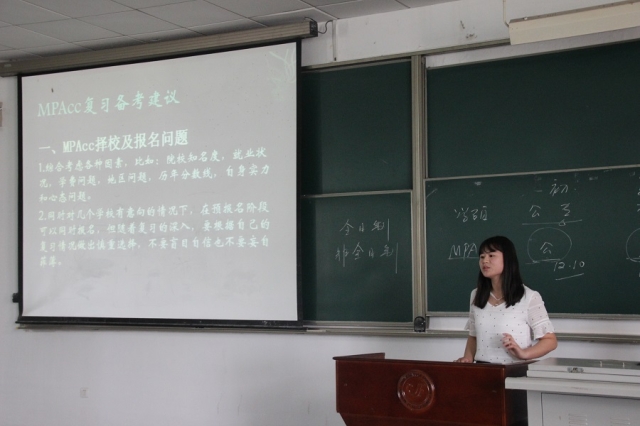 刘襄生,袁雅琪和黄萌三位同学分享了各自的考研复习技巧,时间安排等。在谈到选择学校时,刘襄生同学说到,一定要根据“情感”,“现实”多方面考虑,理性选择。袁雅琪对在场的同学建议:考研一定要重视端正心态和时间规划,学会及时总结。黄萌针对考研每一个科目的特点为同学们推荐了一些好的复习资料。现场同学认真听取学长学姐的经验,记录重要信息。