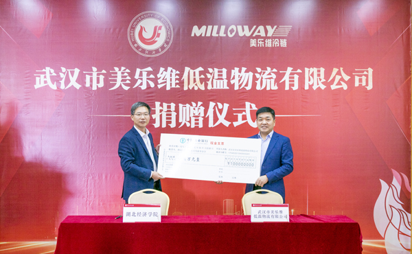 本网讯 10月19日,学校举行武汉市美乐维低温物流有限公司捐赠仪式。该公司向我校捐赠100万元,设立“美乐维奖学金”,用于奖励德智体美劳全面发展的学生。