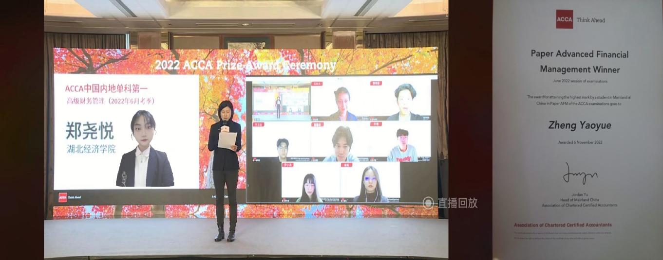 11月5日,2022ACCA中国内地单科第一颁奖典礼在线上举行。我院ACCA1941班郑尧悦在2022年六月考季的ACCA全球统考中斩获中国内地AFM单科第一。
