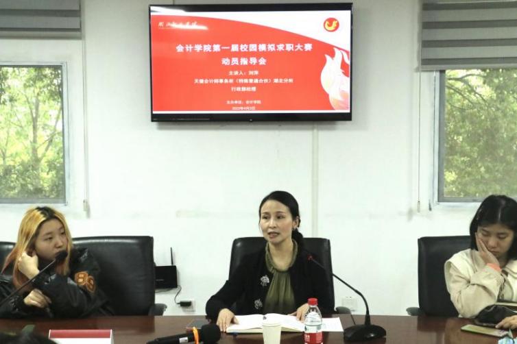 4月4日中午,ok138cn太阳集团529第一届校园模拟求职大赛动员指导会在群贤楼215会议室召开。本次动员指导会特邀天健会计师事务所(特殊普通合伙)湖北分所的行政部经理刘萍为同学们做就业指导讲座。