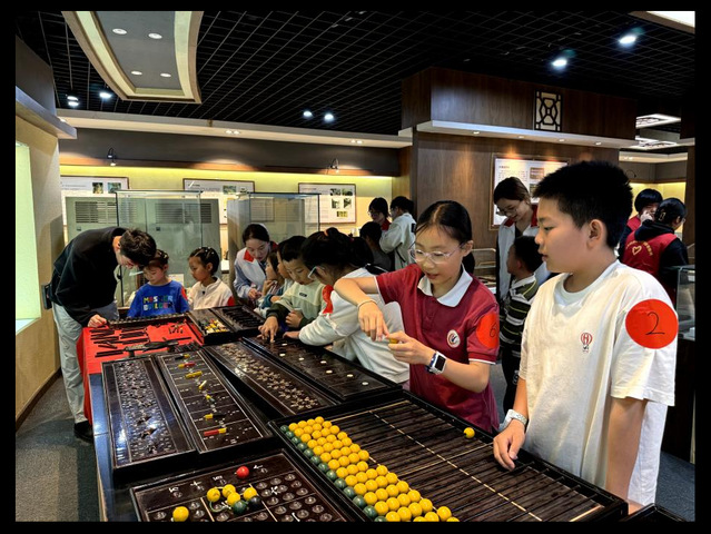 “钱币有哪些种类?”“钱币的前世今生是怎样的?”“最早的压岁钱是什么时候才有的?”随着志愿者的讲解,青少年们在钱币陈列馆内开启了货币文化的解码之旅。青少年们零距离接触古钱币,手持“闯关卡”挑战答题,分组完成古钱币拼图挑战。计算工具陈列馆内,志愿者以古算十三品和算盘导入,生动讲述了计算工具的发展史,青少年们沉浸式体验了各种计算工具,用算盘分组完成了“数字挑战”。