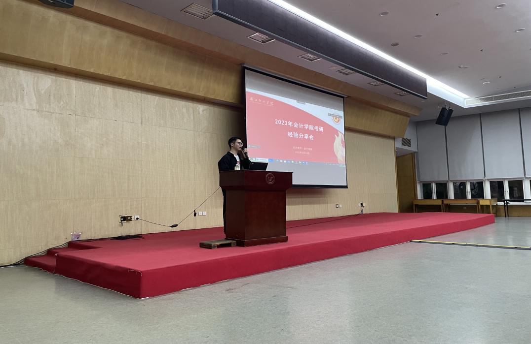 我院学子考研报考专业以会计专硕居多,阮文慧同学以280分的高分上岸中南财经政法大学的会计专硕,她从自身的学习基础、备考用书、备考时间线、择校考量四个维度向同学们做了详细的说明。成功上岸我校会计专硕的潘嘉懿,分享了她考研择校的经验,让大家明白了,很多时候“选择”的重要性不亚于“努力”。殷鸣以详实的政策条文和自身报考经验向同学们介绍了“少数民族骨计划”考研专项,鼓励符合报考条件的同学另择赛道。在备考心态的调整上,喻海峡同学以过来人角度讲述了自己考研失败转而调剂,并成功上岸的经历,希望帮助大家“排雷避坑”,少走弯路。