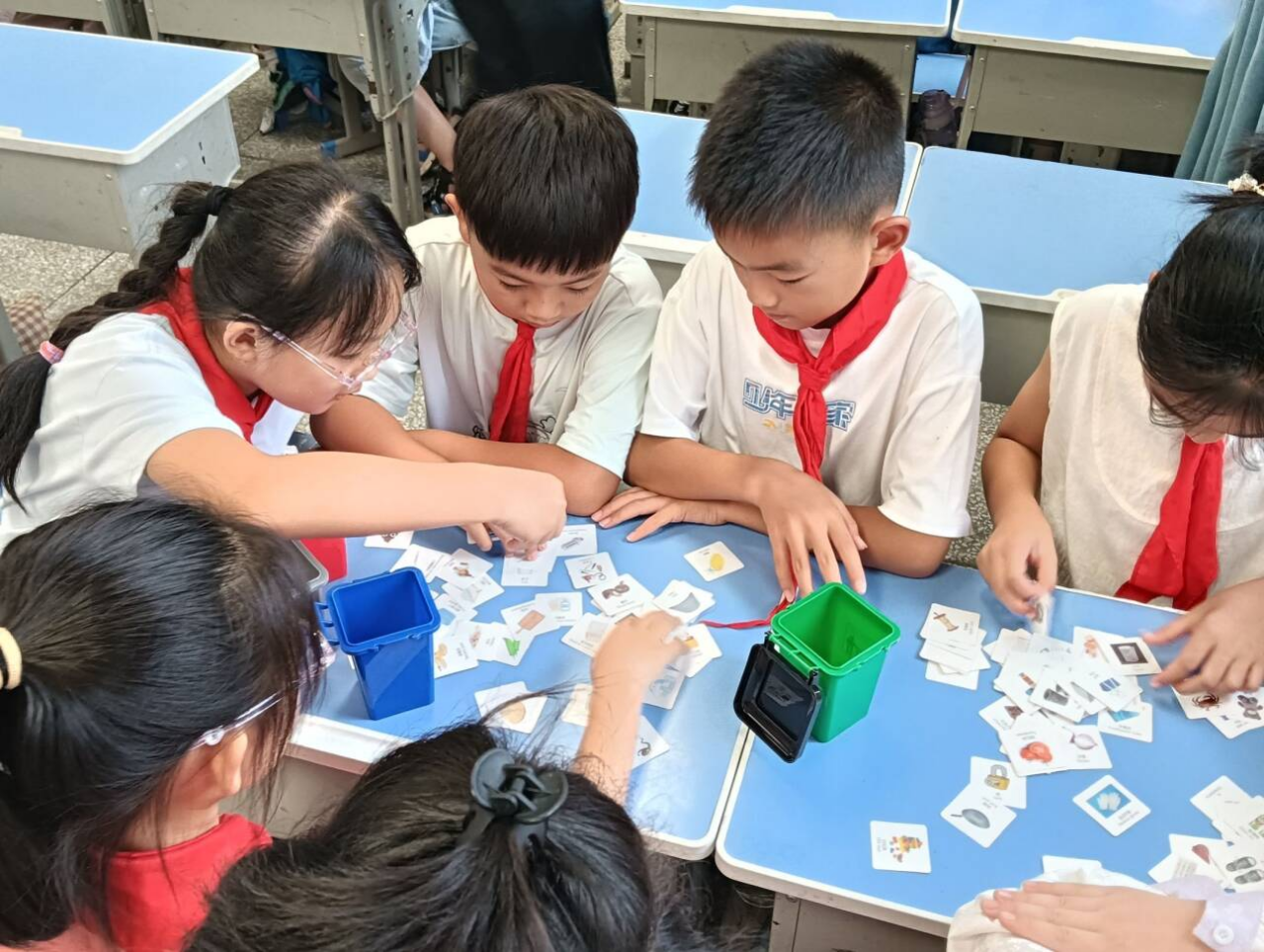 图二 小朋友分组进行垃圾分类模拟投放