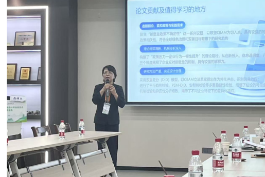我院谈多娇教授、研究生丁一洋、武新宇前去杭州参加此次学术年会。会议一共设置了六个分会场,9月27日下午,研究生丁一洋和武新宇同学在二号分会场共同进行了论文的交流分享,论文由两名研究生在谈多娇教授的指导下完成,题目是《碳会计与碳信息披露研究——基于生命周期成本的视角》,该论文得到了与会专家的点评,专家指出论文的思考角度新颖、语言严谨精确等优点,同时也针对该论文提出了一些非常宝贵的修改意见。