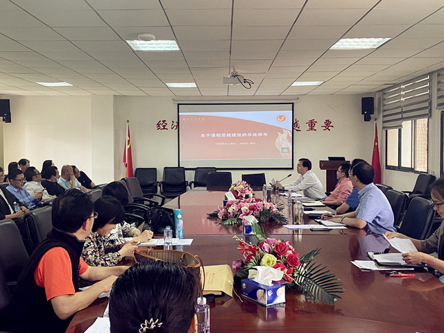 党的十八大以来,党中央高度重视高校思想政治教育工作,全面构建高校思政工作体系,紧紧抓住高校立德树人、铸魂育人根本任务,提出了一系列新理念、新思想、新战略、新举措。为进一步提高我院教师对课程思政的认识,更好的将课程思政融入日常的教学工作,2021年5月27日在群贤楼215大会议室,我院特别邀请了学校马克思主义学院的赵继伟教授为我院全体教师讲授了一次课程思政方面的专题报告,学院张凤松书记主持。