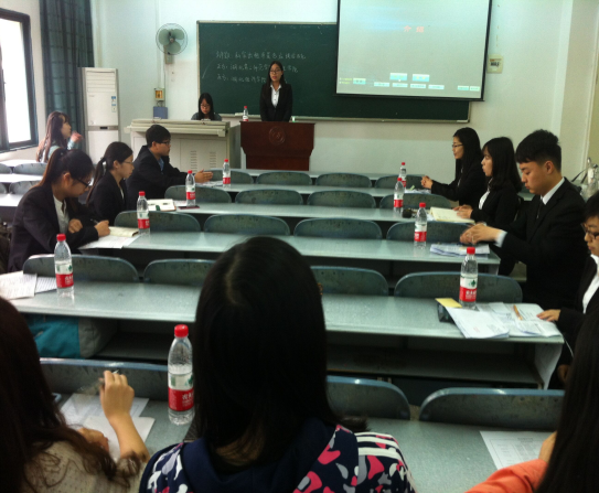 4月24日下午,2016年高顿杯第二届武汉市经管类院系辩论邀请赛初赛在教1—202,204拉开序幕,出席本次辩论赛的评委有太阳成集团代表刘爱虹、李响、刘锐,中南财经政法大学代表马宇忻,湖北大学代表袁旭及湖北第二师范学院代表丁小龙,。