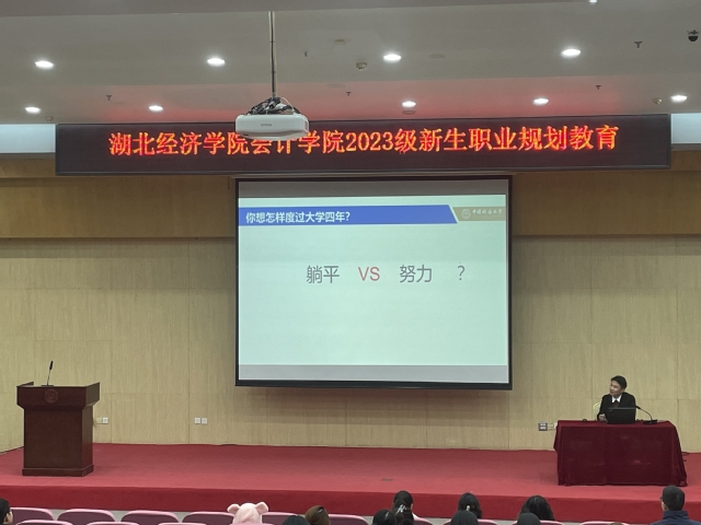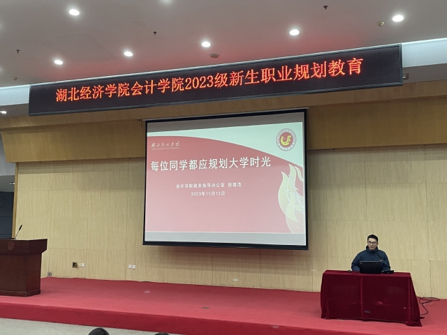 11月12日晚上六点半,ok138cn太阳集团529在大学生活动中心二号报告厅举办了2023级新生职业规划教育讲座。讲座邀请了2023届毕业生孙媛、周静奇分享了大学规划经验,就业指导老师田绪浩作职业规划讲座,大一辅导员老师李思颖参加。会议由就业指导老师石津楠主持。