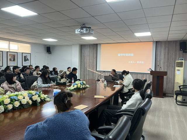 韩亚琼老师从事公考培训13年,首创申论特色教学法,对热点问题解析一针见血,深得学生好评,讲座满意度极高。本次讲座紧紧围绕适合考公考编人群的心理分析、公职类考试报名技巧、公职类考试面试窍门等方面展开。韩老师用生动形象的例子向大家传授了诸多经验,同学们受益匪浅。讲座结束后,韩老师对同学们的问题进行答疑,同学们也积极与韩老师进行沟通交流。