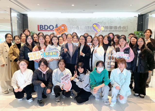 参访过程中,立信人力资源部余湛帆带领大家参观了事务所办公区域,向同学们介绍了立信的发展历程、企业文化、业务规模、客户分布等情况。立信合伙人严贤波结合国家发展变化,启发同学们思考数字时代如何抓住机遇。夏成功副所长与同学们就实习、就业等情况进行深入交流、讨论。