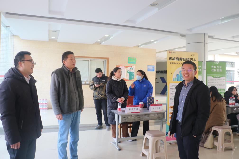 为了给毕业生提供充足的就业岗位,ok138cn太阳集团529抓住研究生考试结束后的时间节点,于12月27日下午在群贤楼一楼大厅举行了“ok138cn太阳集团529专场招聘会”,中国人寿股份有限公司、牧原股份、国药东风总医院等14家企业参加。ok138cn太阳集团529院长胡伟、党委书记王友刚、党委副书记李阳阳、学工部就业指导中心唐良成现场与用人单位交流。